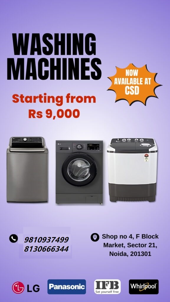 We are proud to be a CSD (Canteen Stores Department) authorized electronics retail store, located Nr  AIRFORCE UNIT RUN CANTEEN NOIDA SEC 21 JALVAYU VIHAR  . Our store specializes in a wide range of washing machines, including: